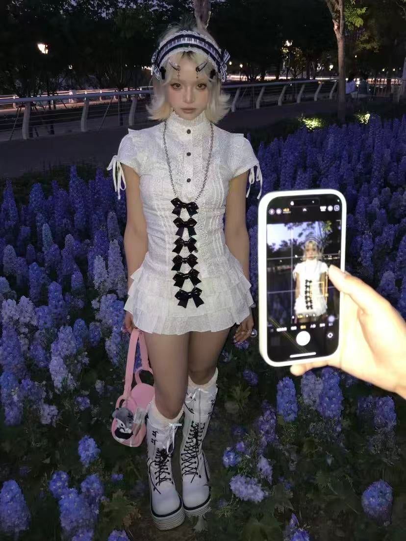 Long Bowknot Necklace with Multiple Bows | PU & Stainless Steel, 98cm