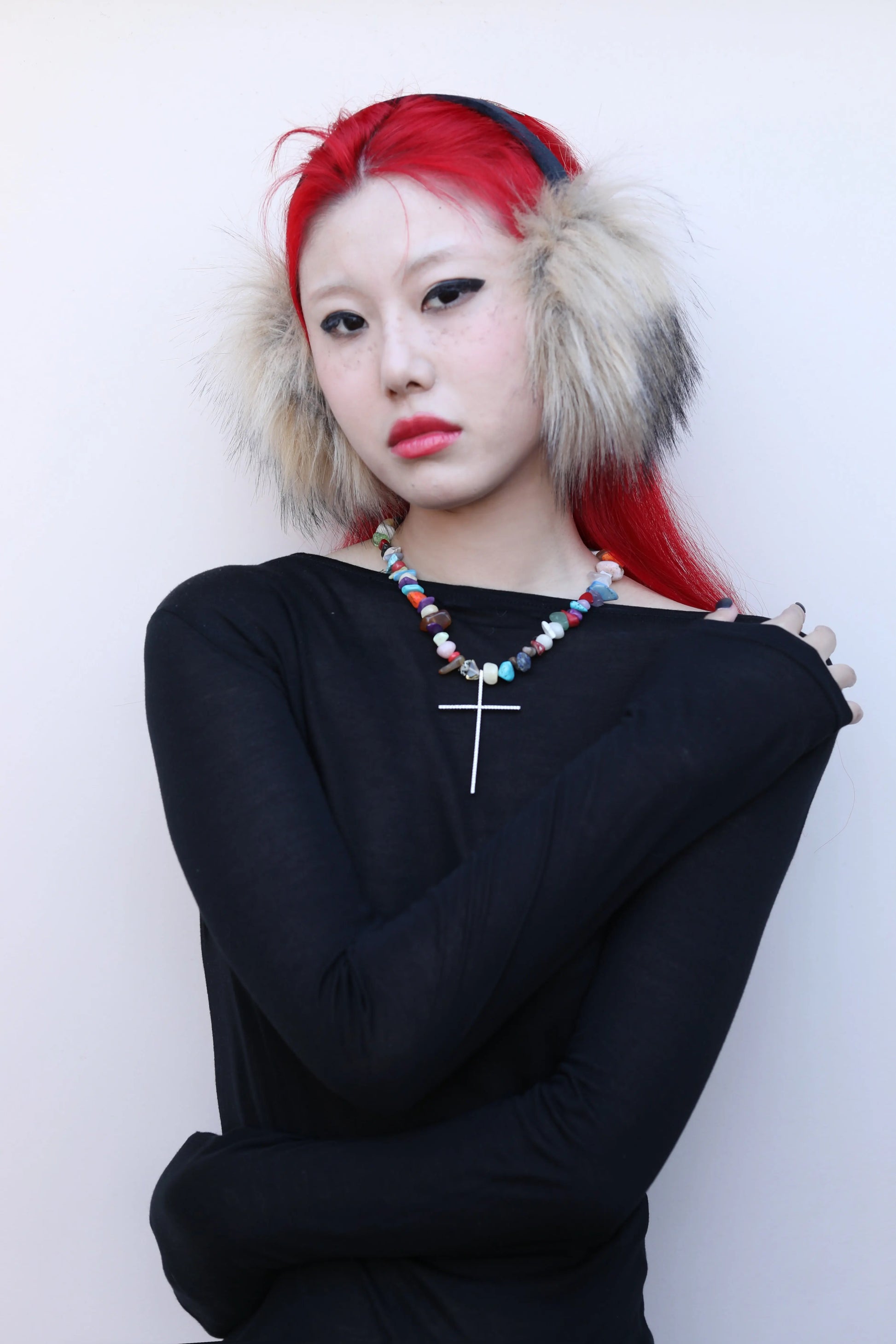 Beaded necklace featuring malachite, copper with zircon inlay, and 45cm length with an extension.